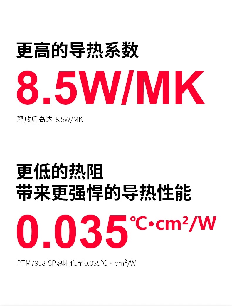 这些参数表明PTM7950相变化材料具有高导热性能和良好的热管理能力,适用于通讯设备、工业控制、消费电子、大功率电源与IGBT等应用领域(参考 )。