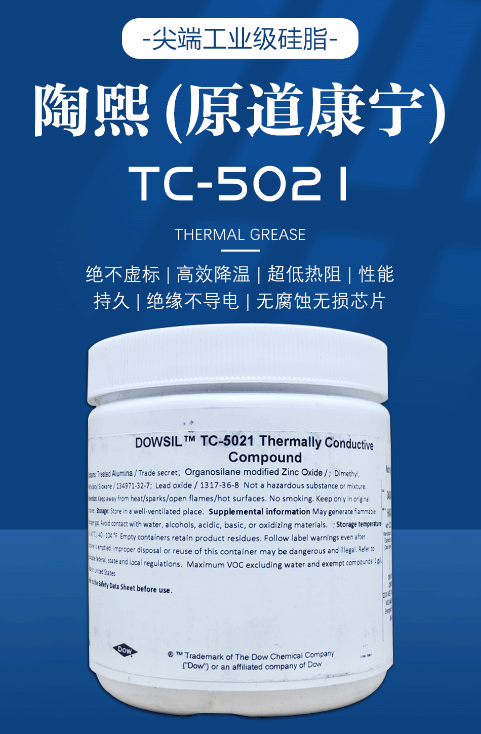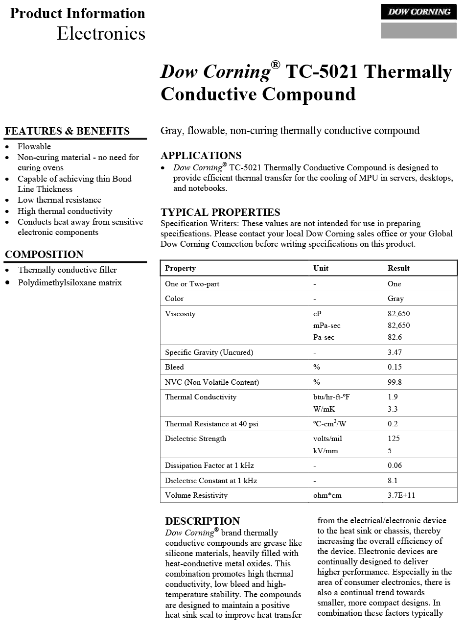 美国陶熙TC-5021导热硅脂的具体参数如下: