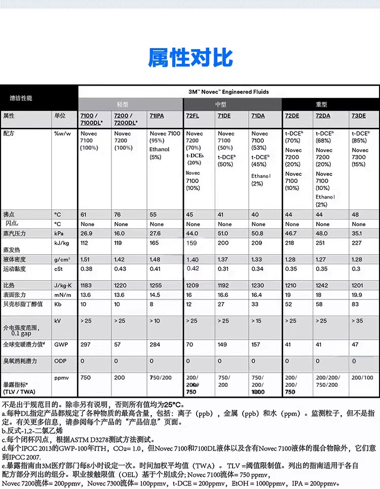 • 选型考量:Novec 7200特别适合清洗轻型至中度的污垢(如微粒、氟素油)。对于更顽固的污渍,它常与其他溶剂搭配使用 。如果您需要更低的沸点以加快干燥速度,可以考虑同系列的Novec 7100(沸点61°C)。