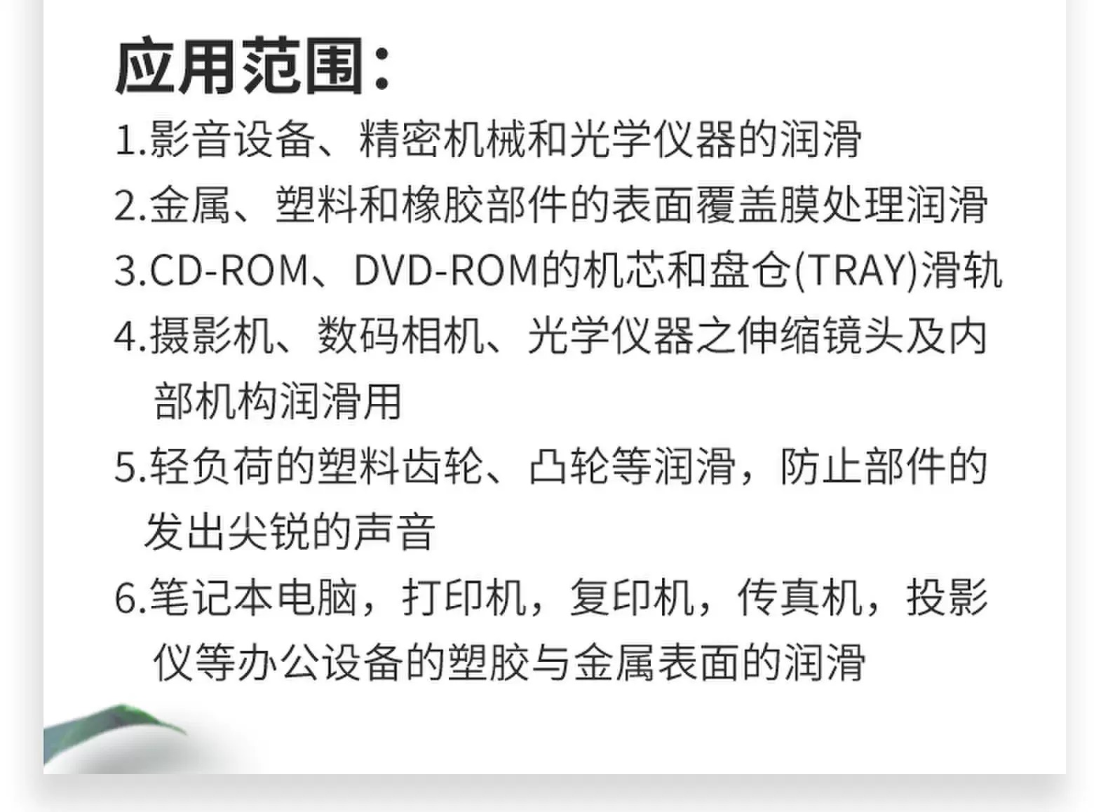 • 速干性:喷涂或涂刷后,溶剂能快速挥发,在部件表面形成一层极薄的干燥润滑薄膜。