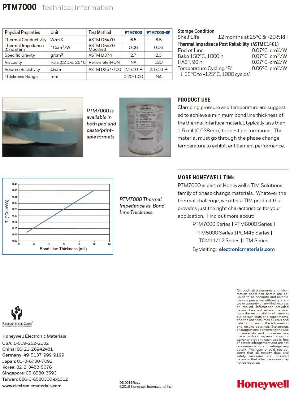 霍尼韦尔PTM7000系列相变材料(PCM)的具体参数如下: